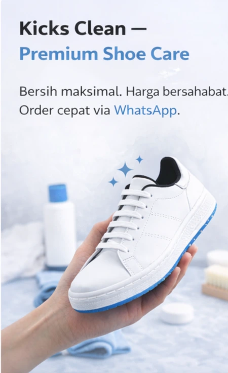 Kicks Clean adalah layanan cuci sepatu di Kota Malang yang mengutamakan kebersihan, detail, dan harga terjangkau. Kami menggunakan teknik pembersihan yang aman untuk menjaga kualitas sepatu Anda — dari daily sneakers hingga sepatu premium.